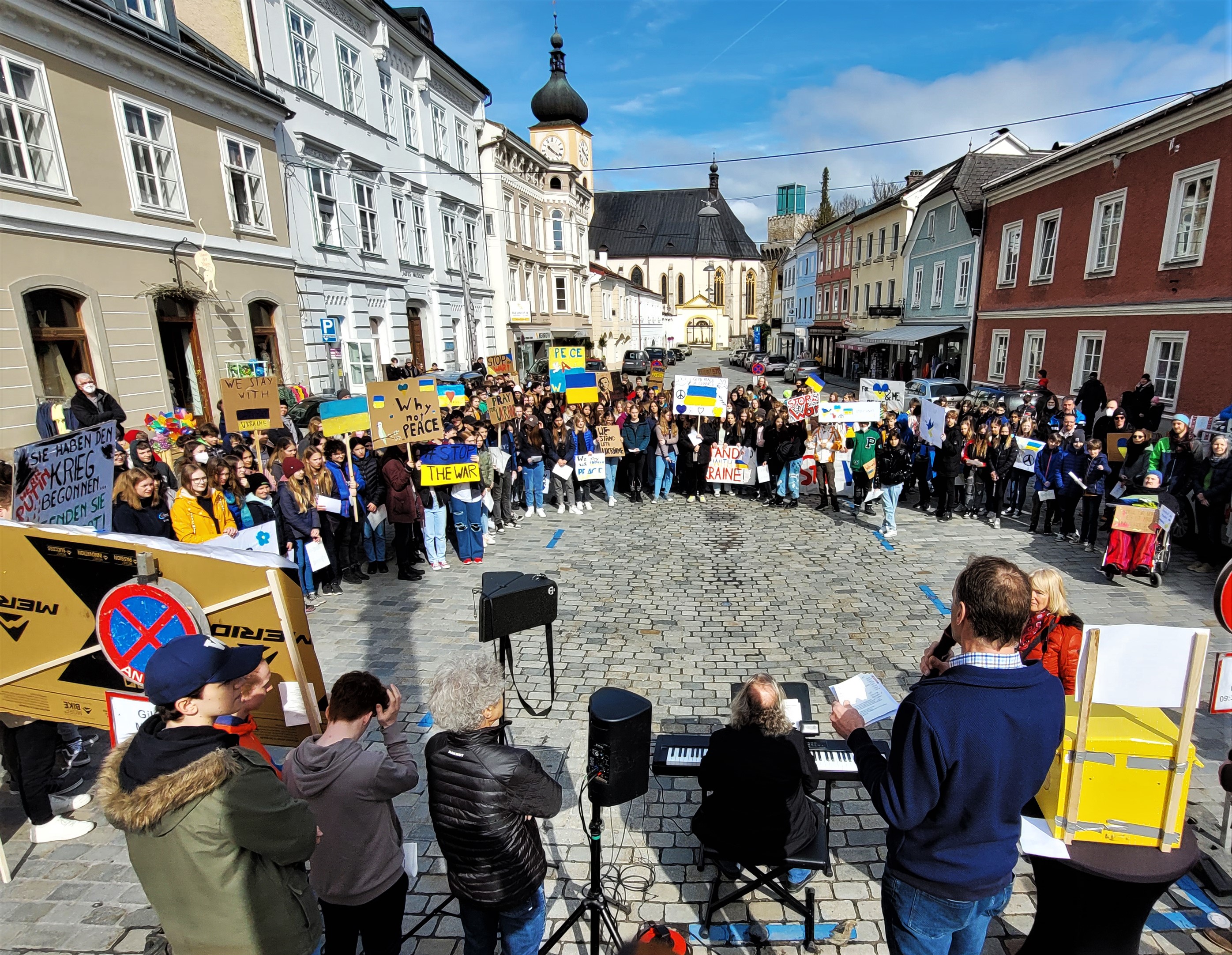 Und so war es für Karl Piaty sen. ein sehr einprägsames Erlebnis, wie sich am 6. April 2022 viele junge Waidhofner Schülerinnen und Schüler direkt neben dieser Mariensäule zusammenfanden, um in persönlichen Briefen an Wladimir Putin ein sofortiges Kriegsende erbaten.